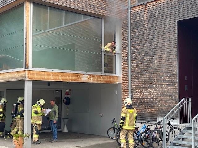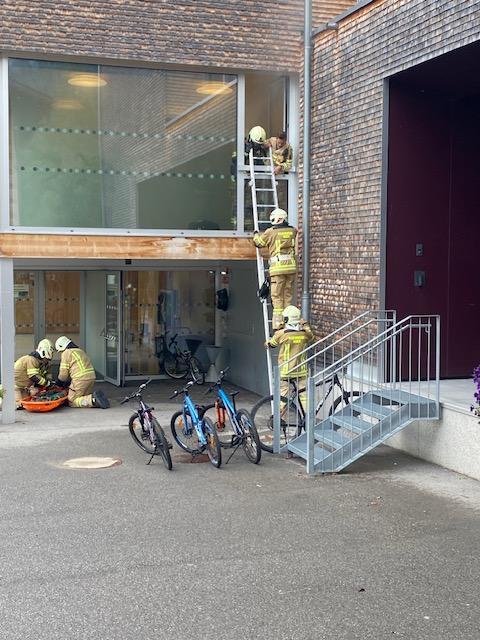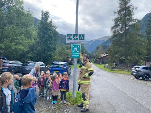 Nach einer kurzen Einweisung in der Klasse und aktiviertem „Brandalarm“ folgten die Kinder ihren Lehrpersonen über den Fluchtweg ins Freie zum Sammelplatz.