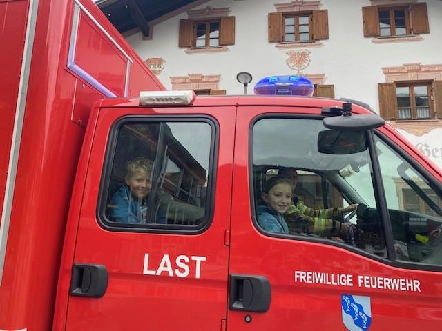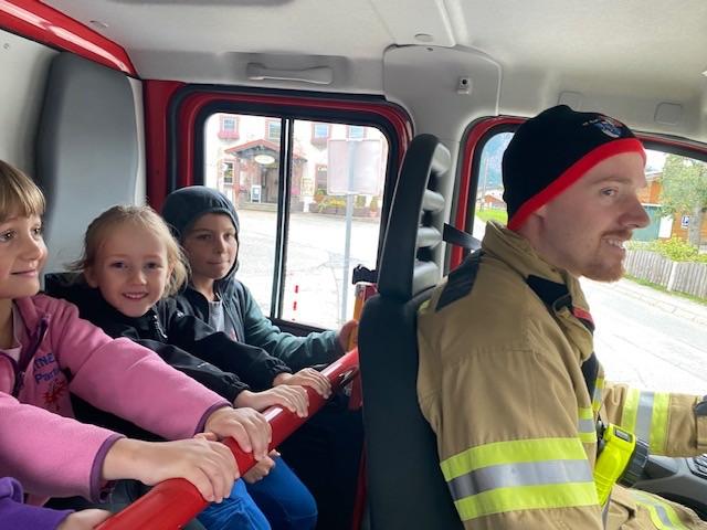 Zum Abschluss durften alle mit dem Feuerwehrauto zur Feuerwehrhalle fahren. Dort wartete noch eine gemeinsam Stärkung auf die Kinder.