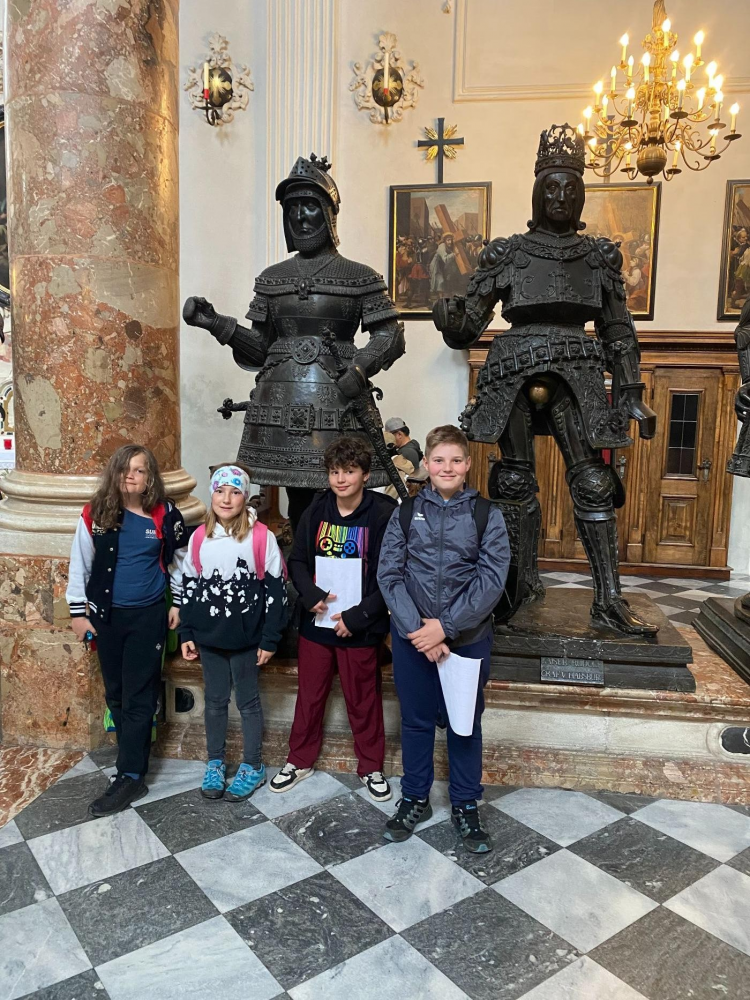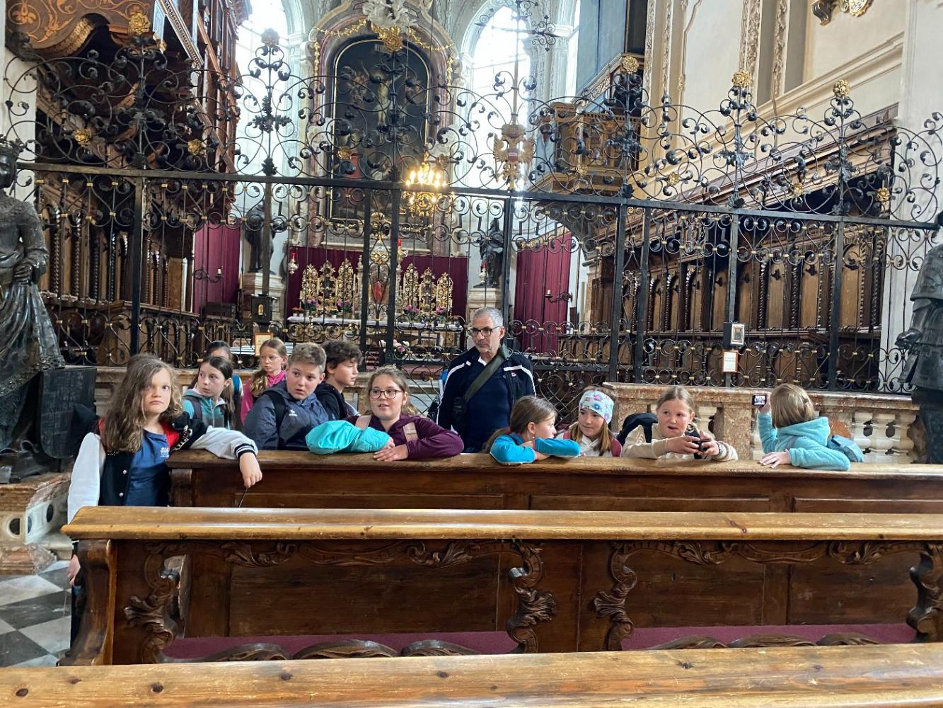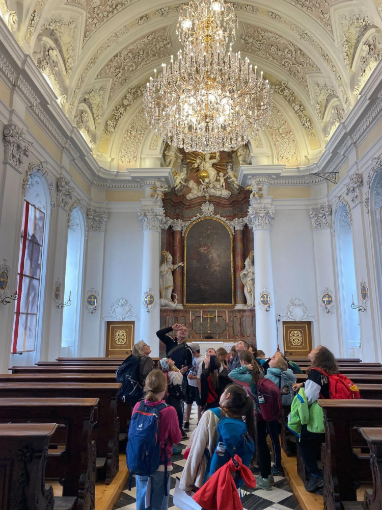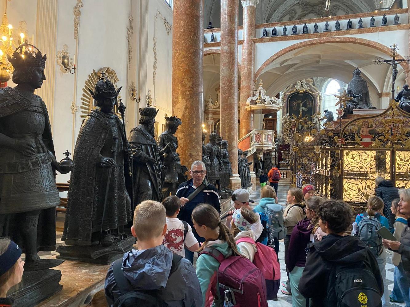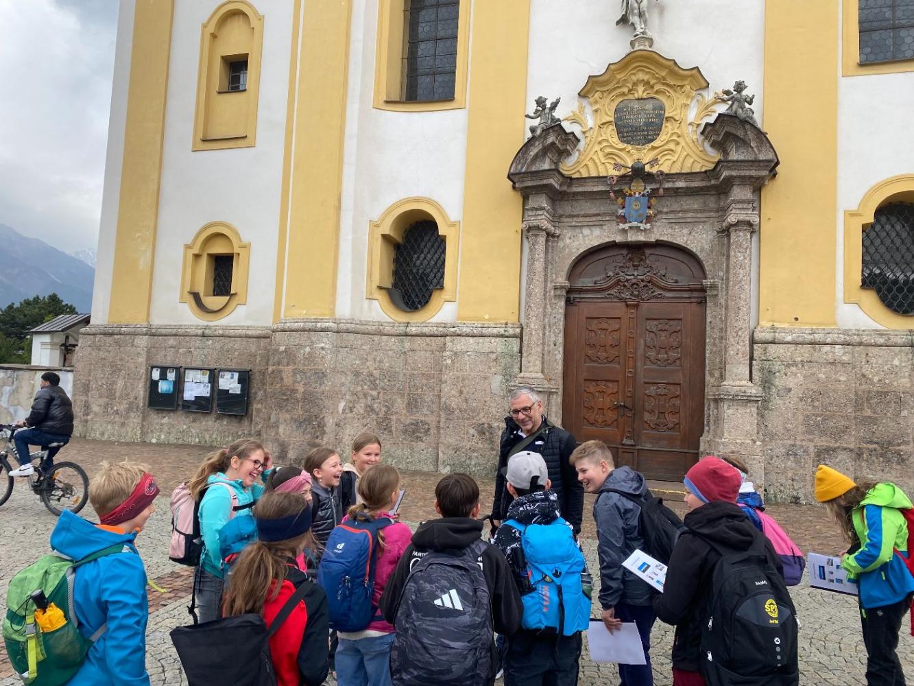Unsere erste Station war die Basilika von Wilten. Unser Schulleiter Thomas Bischof führte uns in gekonnter Manier herum und konnte den Kindern sein geschichtliches Wissen näherbringen.