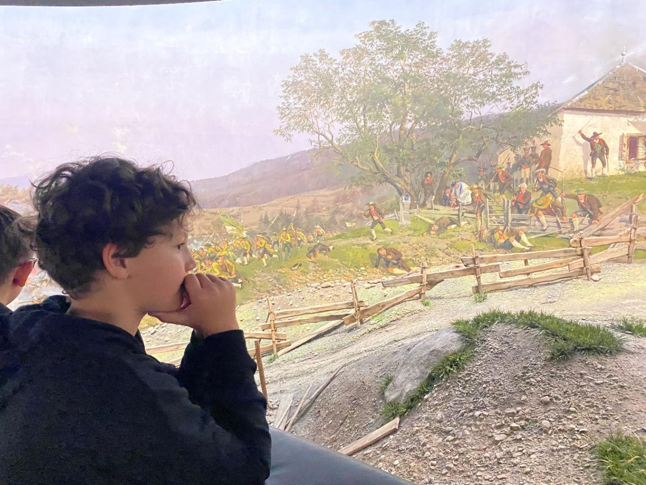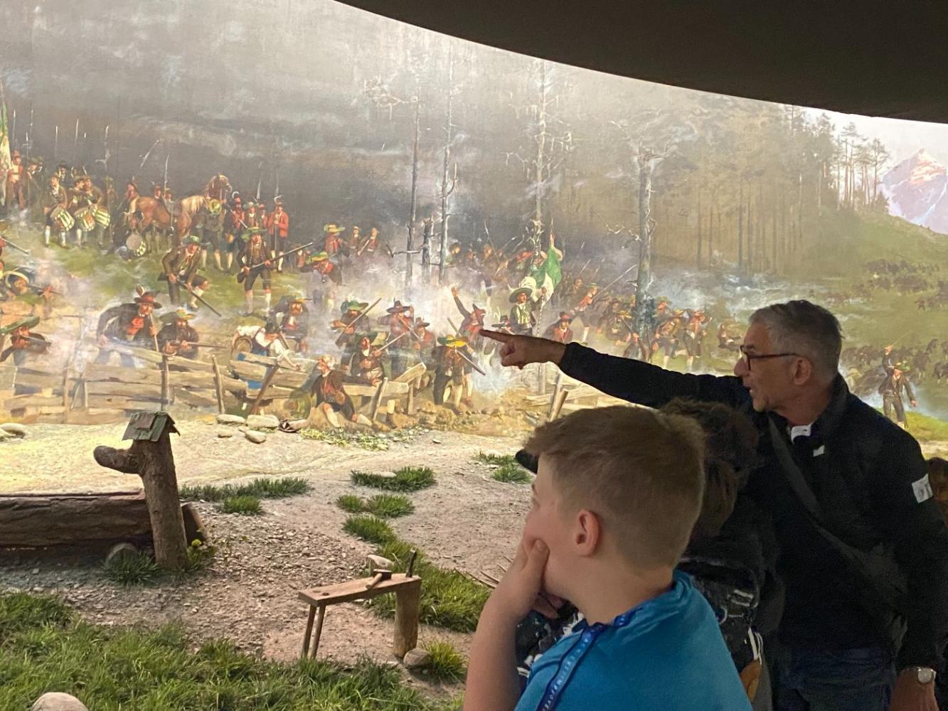Anschließend "stürmten" wir - wie damals die französischen und bayrischen Truppen - auf den Bergisel. Dort bestaunten wir das Andreas-Hofer-Denkmal und unser Lehrer führte uns durch die Ausstellung im Tirol Panorama.