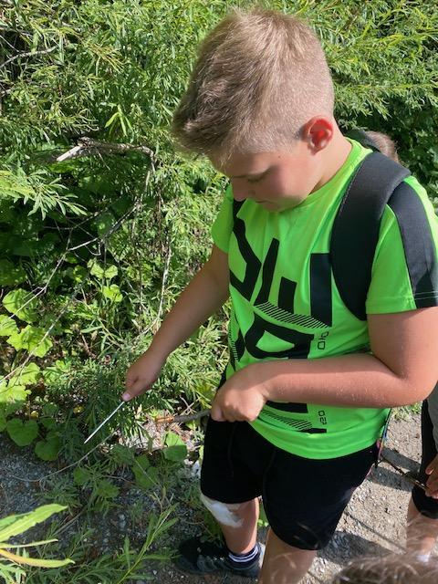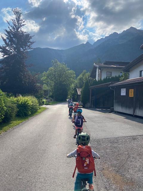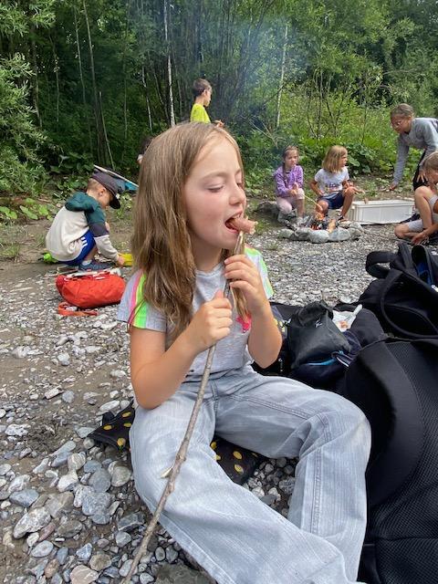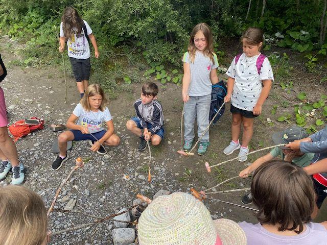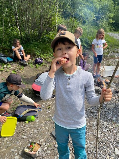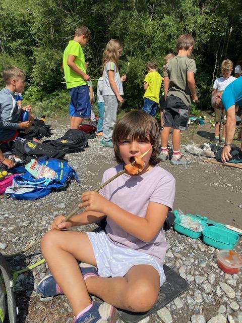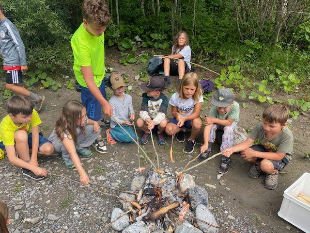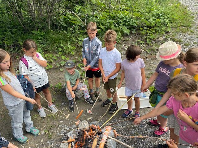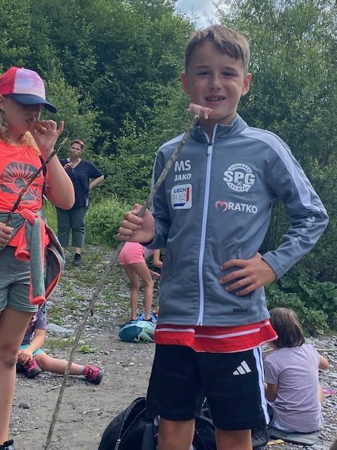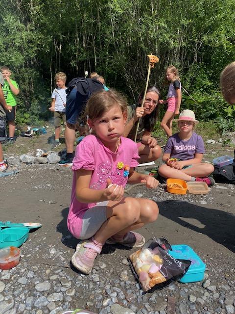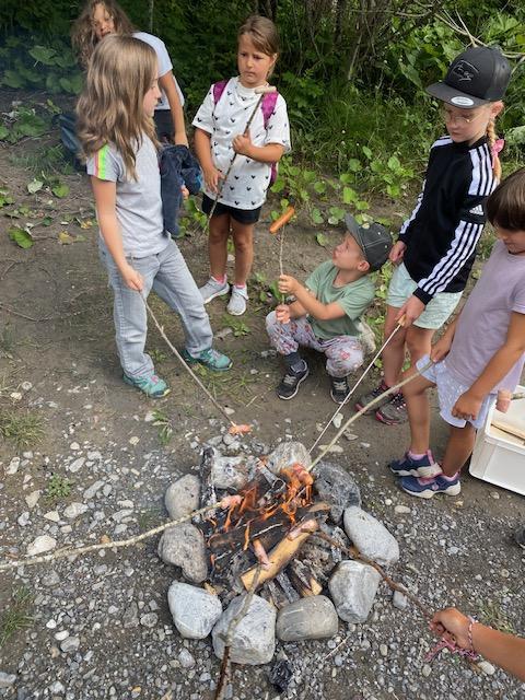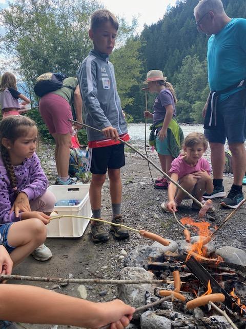 Gemeinsam fuhren wir auf dem Radweg über Grünau nach Elbigenalp. An einer Grillstation am Lech machten wir ein kleines Lagerfeuer, schnitzten Grillspieße und grillten unsere mitgebrachte Jause.